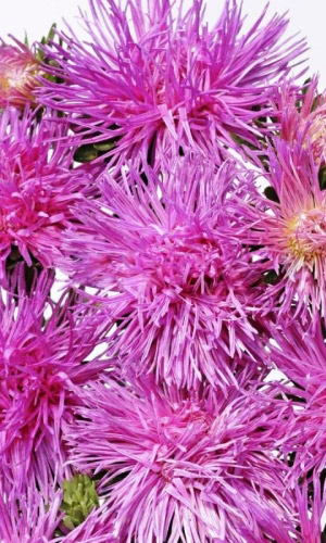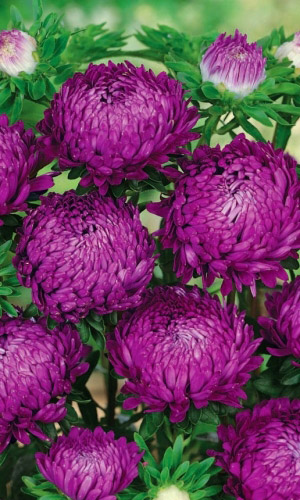 Серия астр с полностью махровыми игольчатыми соцветиями красивой формы до 10 см в диаметре. Куст букетной формы, с большим количеством стеблей. С каждого можно получить до 20 соцветий. Длительно сохраняют декоративность на клумбе и в вазе. Все сорта серии выровнены по высоте, габитусу, времени цветения, форме и размеру цветка, что делает эту серию универсальной и полностью пригодной для профессионального использования (производство срезки, цветущей рассады). Высота 60-70 см...