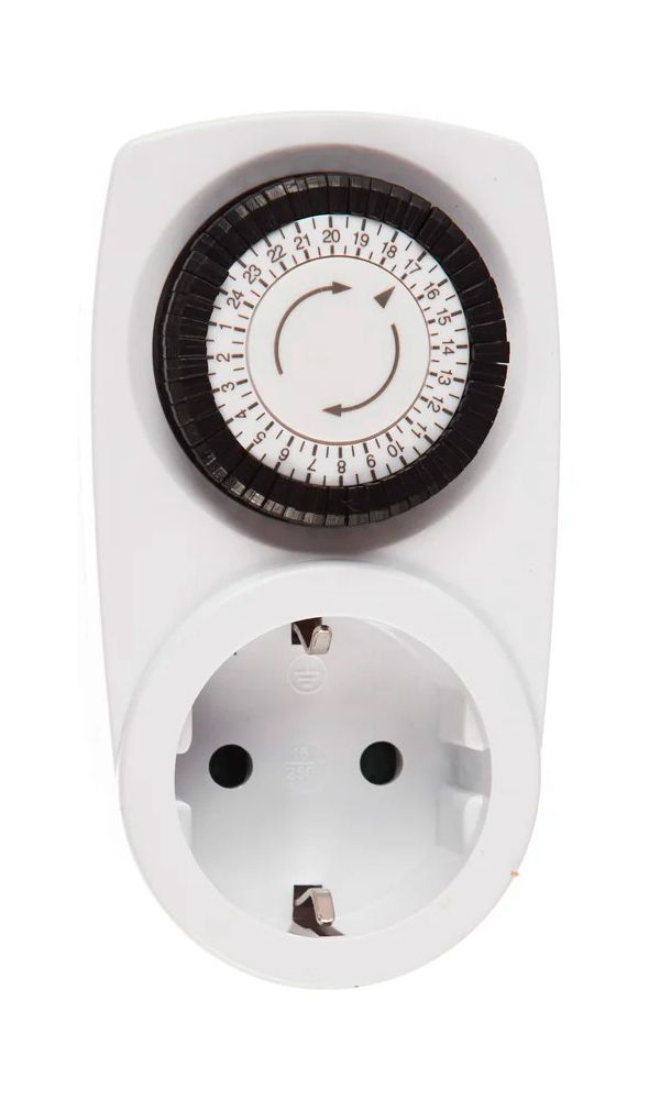 Розетка с таймером даёт возможность автоматически включать и выключать подсветку для растений, а также бытовые электроприборы когда вас нет дома. Работу устройства настраивают с помощью механического диска, шаг - 30 минут.Нужно включить подсветку с 8 до 10 утра и с 16 до 19...