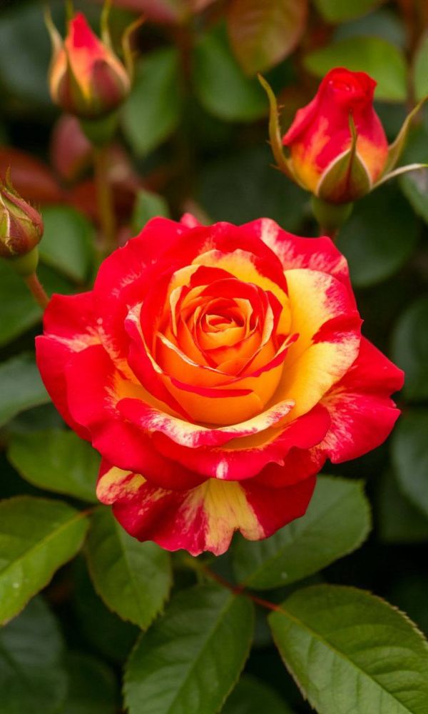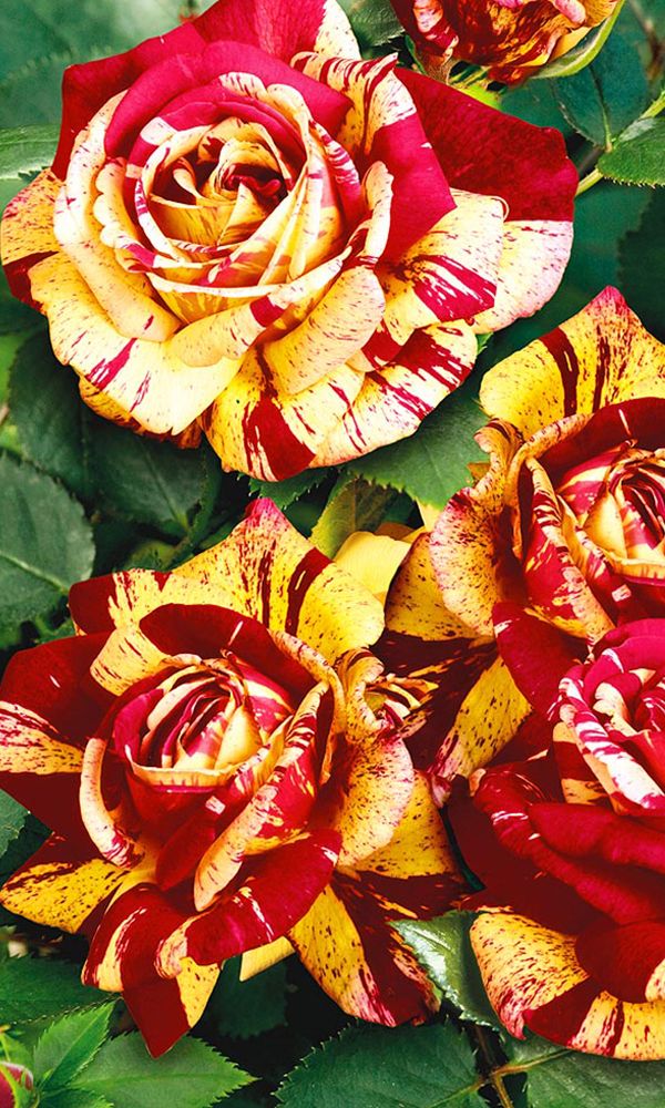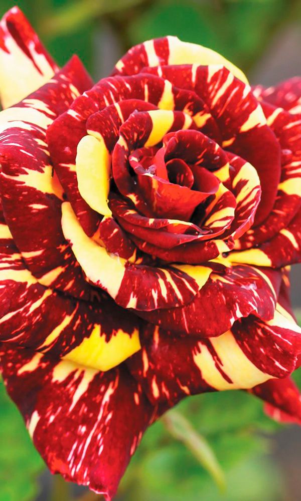 Это уникальный сорт, который привлекает внимание своим необычным внешним видом. Бутоны этой розы имеют оригинальную окраску: на тёмно-красных лепестках выделяются яркие жёлтые полосы. Некоторые цветы украшены небольшими пятнами.На одном кусте невозможно найти два...