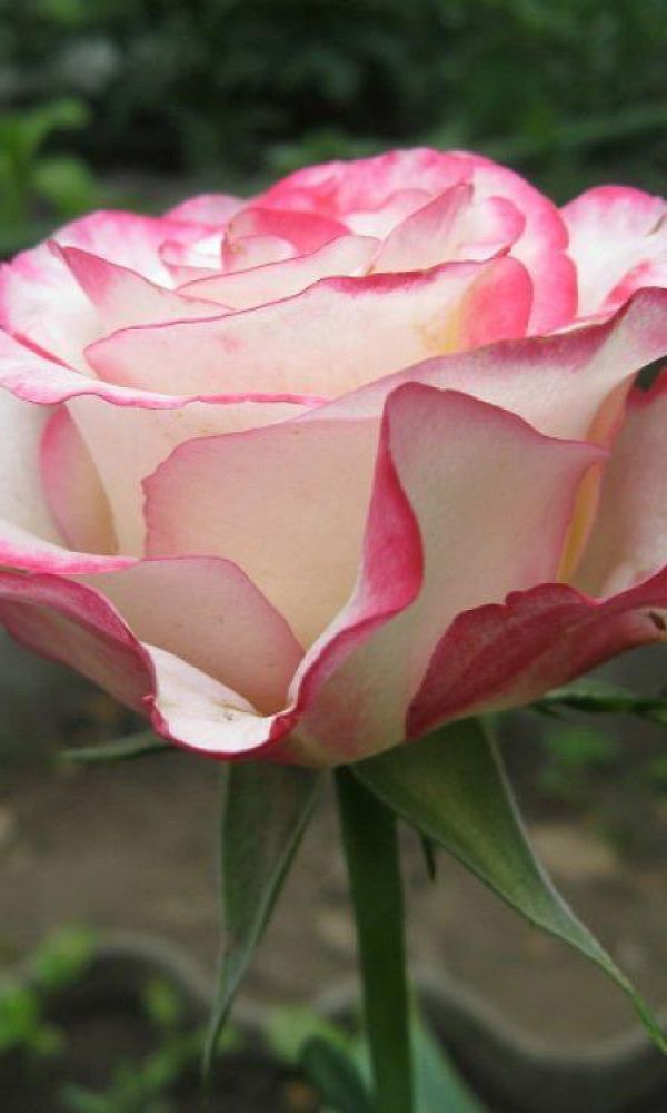 Сорт французской селекции питомника Delbard с эффектной двуцветной окраской. Бутоны в закрытом состоянии малиновые, по мере распускания лепестки светлеют и становятся белыми с ярким малиново-красным обрамлением по краям.Цветки крупные, диаметром 11–12 см, с удлинёнными...