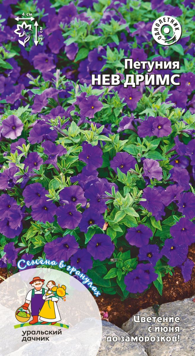 Цветение продолжается с мая до первых заморозков!Эта смесь отечественных гибридов многоцветковой петунии от Селекционно-семеноводческой станции «Устиново» отличается ранним и обильным цветением. Клумбы с этими растениями напоминают океан цветов тёмно-синего и...