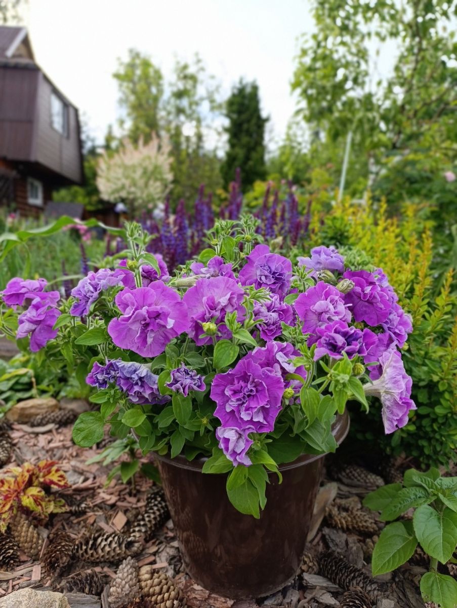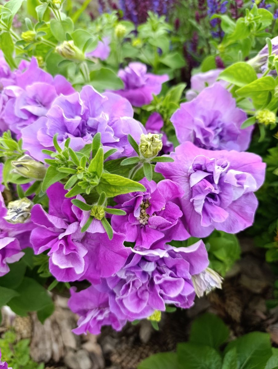 Шикарная махровая, крупноцветковая петуния отличается компактным кустом, высотой 20-30 см и обилием махровых цветков, с сильногофрированными лепестками, диаметром до 10 см, лавандового цвета. Используется в оформлении клумб, вазонов, балконных ящиков. Характеризуется пышным, длительным и обильным цветением.