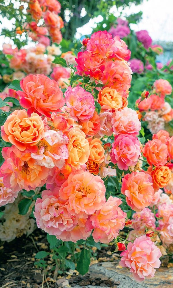 Открытый грунтЯрко-оранжевая роза напоминает сочный, спелый апельсин: столько в этом оттенке жизни, тепла и оптимизма. Цветки крупные (9-10 см), оранжевые, переливчатые, с медным оттенком, махровые, очень душистые, на прочных цветоносах, собранны в соцветия до 9 шт. Это очень обильноцветущий сорт, поражающий своей красотой даже самых требовательных садоводов. Цветение происходит шикарными волнами весь летний сезон, до заморозков. Сорт очень устойчив к неблагоприятным погодным условиям, хорошо переносит зимние морозы и летнюю засуху. Он хорошо подходит для выращивания в саду и для вертикального озеленения заборов, арок, домов и даже балконов.