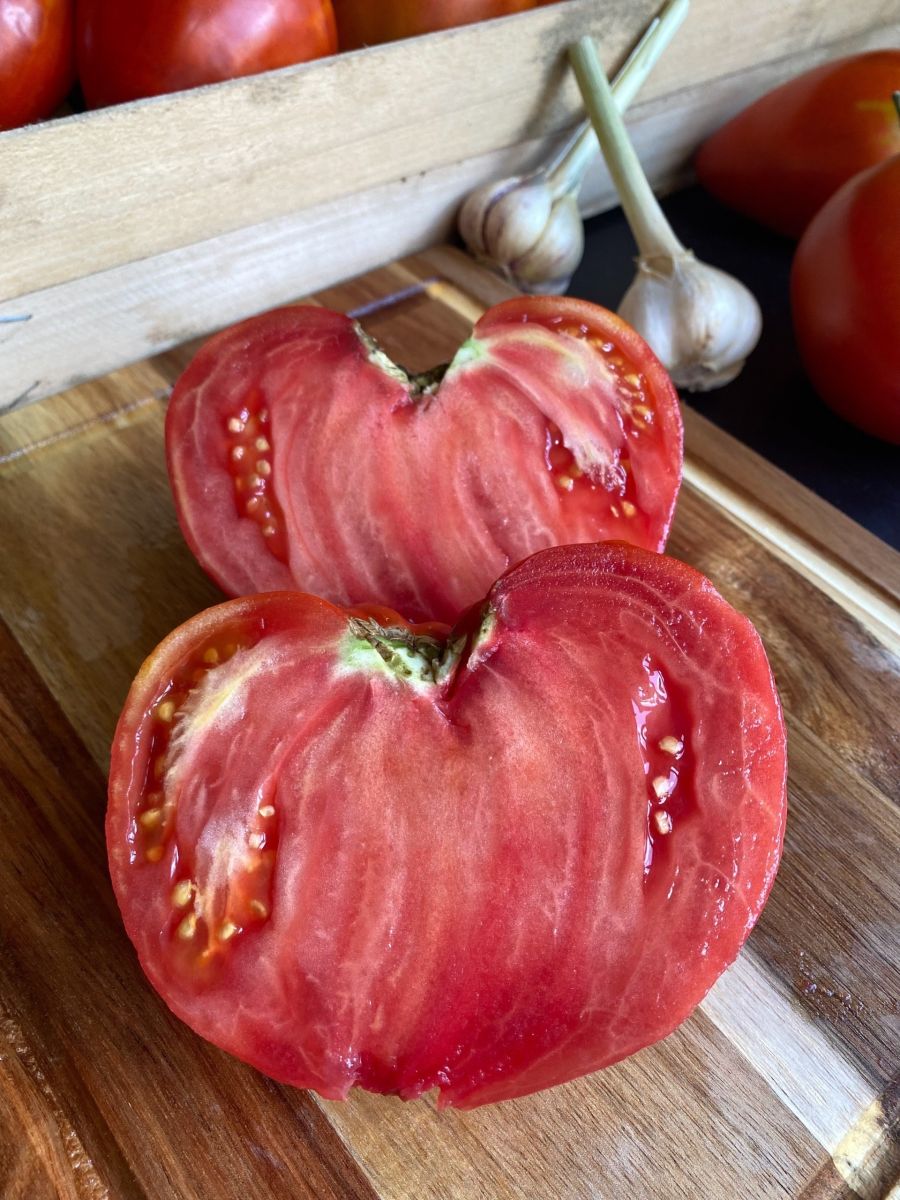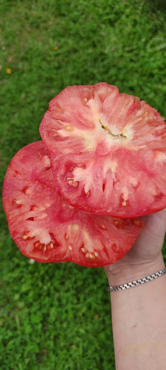 Сорт среднеспелый, светолюбивый, хорошо плодоносит в открытом грунте, не любит теплиц. Растение среднерослое, высотой до 1,5 м. Плоды гладкие, округло-плоские, красно-малинового цвета, плотные, с сахаристой мякотью и малым количеством семян, устойчивые к растрескиванию. Первый урожай из плодов массой 0,5-1 кг собирают до 1 августа. Второй урожай из 20-30 томатов среднего размера-до конца сентября. Урожайность до 10 кг/м2.