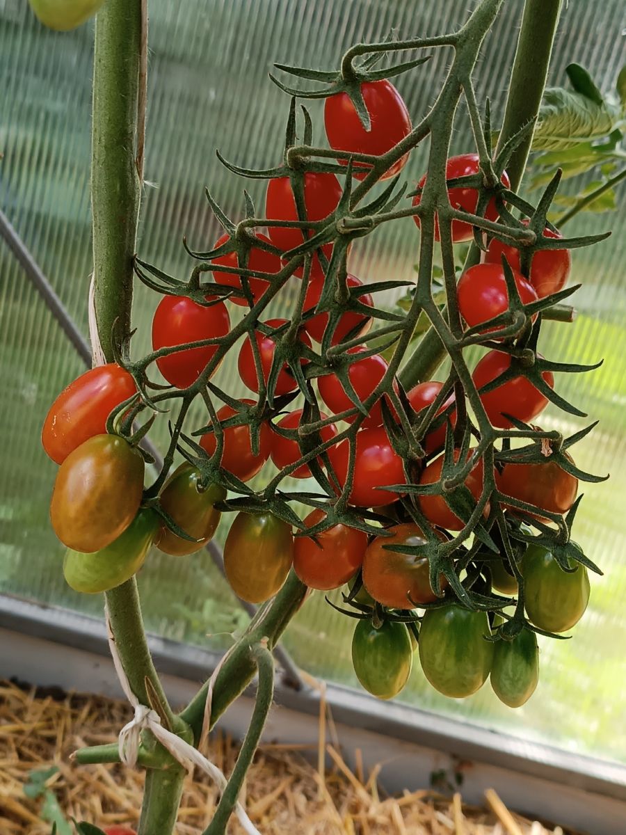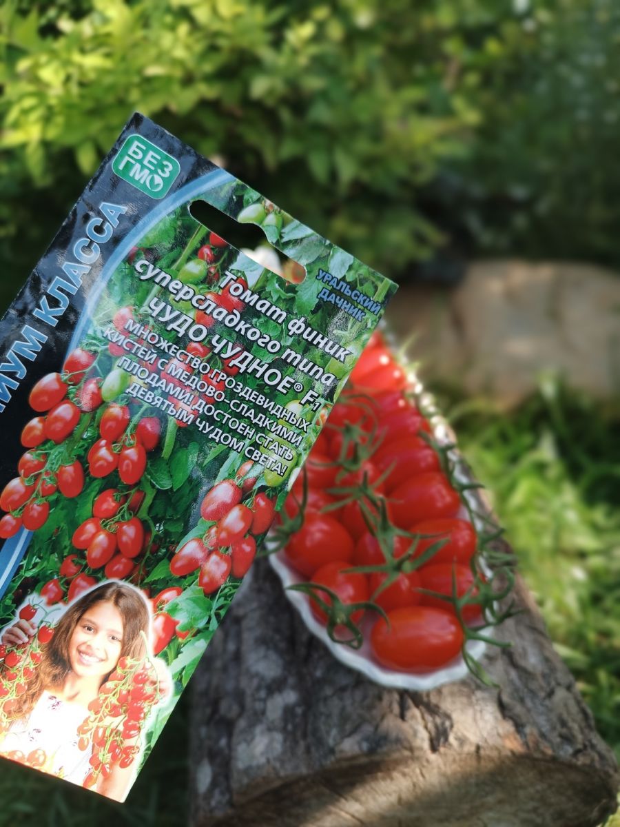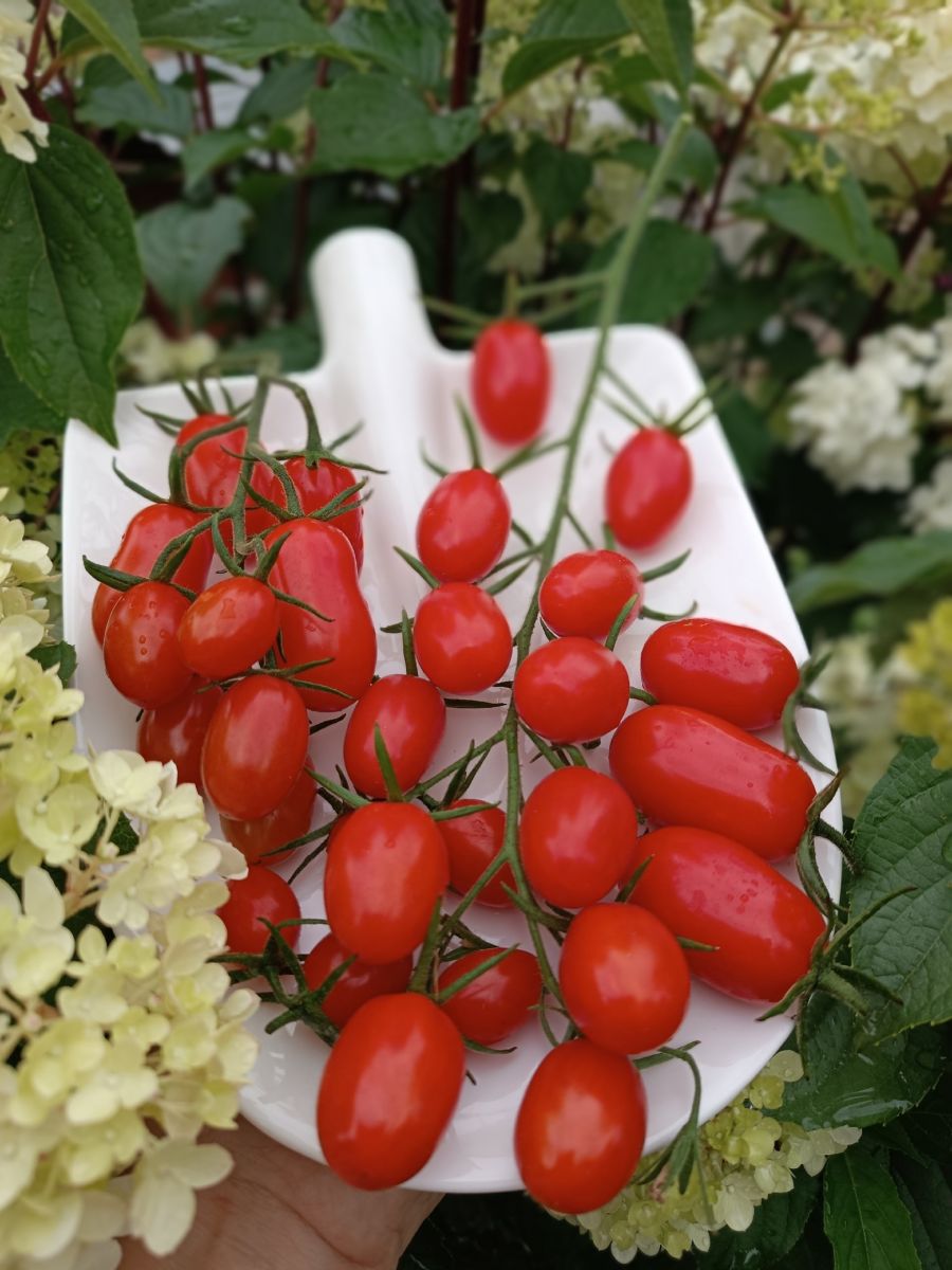 Мегапродуктивный гибрид томата-черри для теплиц. Растения индетерминантные, высотой 1,9-2,3 м, требуют подвязки. Урожай созревает в ранние сроки – через 107-112 дней после появления всходов. Плоды-сливки средней массой 10-12 г, глянцевые, плотные, очень вкусные. Собраны в объёмные, сложные кисти: в каждой 55-65 плодов! Отлично подходят для домашних заготовок. Урожайность может достигать 9-11 кг/м2.