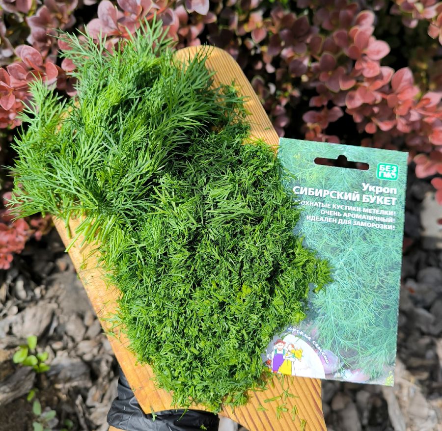 Среднеспелый, кустовой, компактный, густооблиственный, суперурожайный сорт. Отличительная особенность в том, что он пригоден для выращивания в горшках и очень сильная ароматичность. Лист крупный, зелёный, со слабым восковым налетом, напоминает морозные рисунки на стекле в лютые морозы! Растения очень холодостойкие, хорошо переносят кратковременные весенние заморозки. Масса одного растения при уборке на зелень 30-50 г, при уборке на специи 70-100 г.